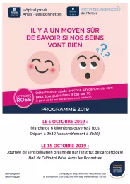 L'Hôpital Privé Arras les Bonnettes se mobilise pour Octobre Rose en organisant une marche de 6kms le samedi 13 octobre 2018 !
