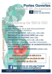 Samedi 24 Novembre 2018 - L'Hôpital Privé Arras les Bonnettes organise une journée Portes Ouvertes de la maternité.